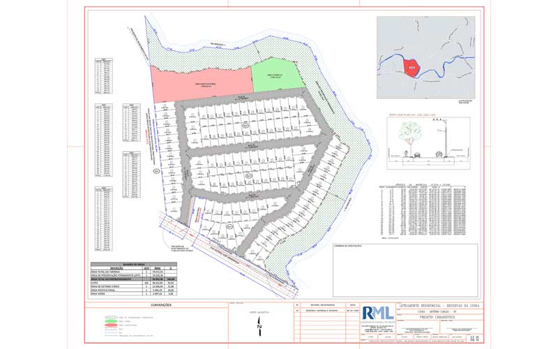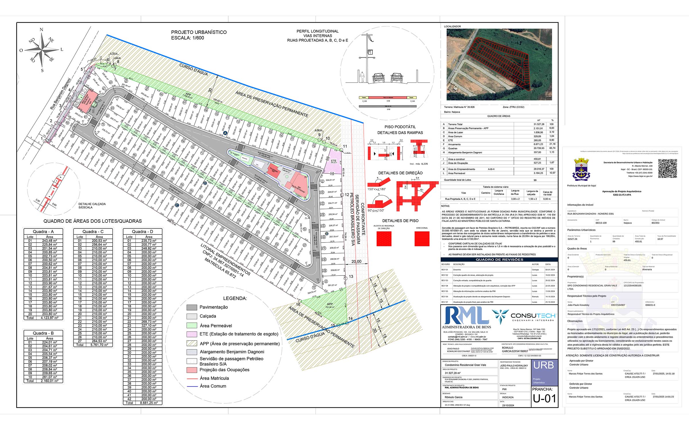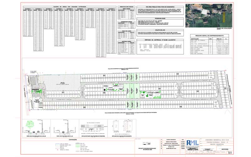 Sendo um condomínio fechado composto por 99 lotes de aproximadamente de 200m² cada, com várias infraestruturas, como academia, salão de festas, quadra de esportes e piscina.